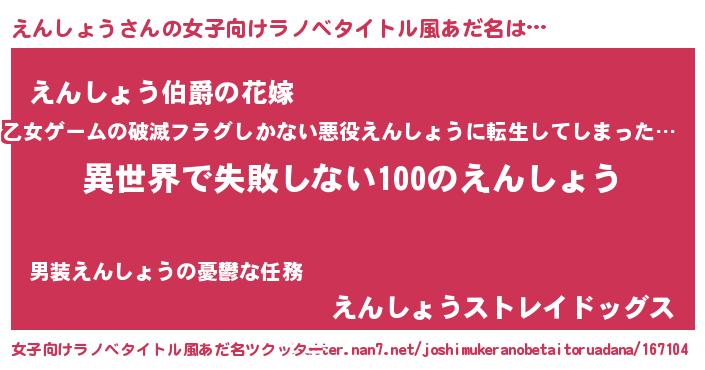 | 男性向けラノベタイトル風あだ名 | 『えんしょうという概念が存在しない退屈な世界 』 |