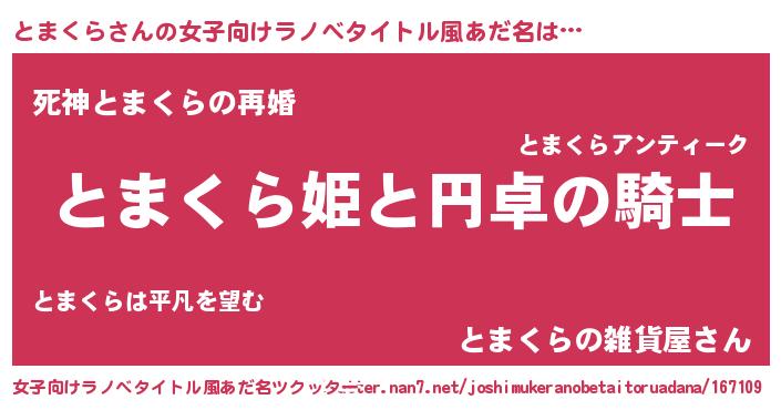 | 男性向けラノベタイトル風あだ名 | 『とまくらの憂鬱』 |