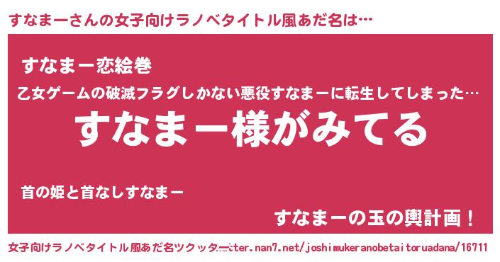 | 男性向けラノベタイトル風あだ名 | 『すなまーの嫁は女の子じゃないと思った?』 |