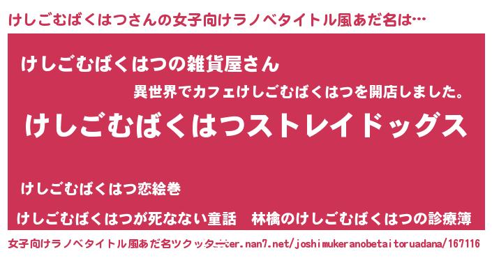 | 男性向けラノベタイトル風あだ名 | 『Re:けしごむばくはつから始める異世界生活』 |