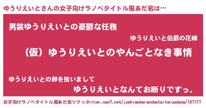 | 男性向けラノベタイトル風あだ名 | 『ゆうりえいとの憂鬱』 |