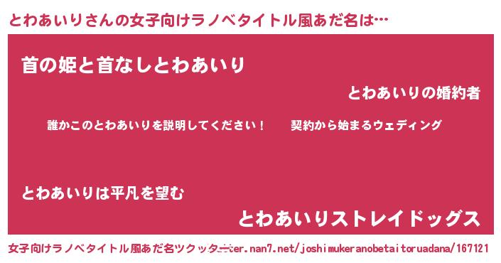 | 胡散臭い通販商品みたいなあだ名 | 『億万長者になれる水晶球…その名も「とわあいり」』 |
