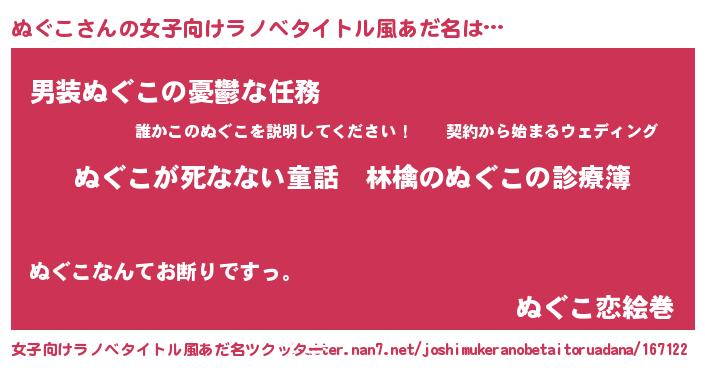 | 男性向けラノベタイトル風あだ名 | 『魔弾の王とぬぐこ』 |