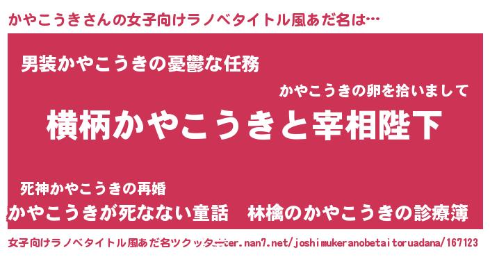 | ヘコむあだ名 | 『かやっ子』『かやにゅー』 |