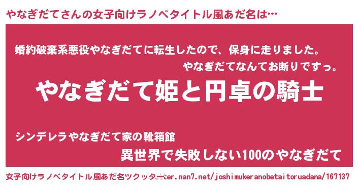 | 男性向けラノベタイトル風あだ名 | 『やなぎだての憂鬱』『緋弾のヤナギダテ』 |