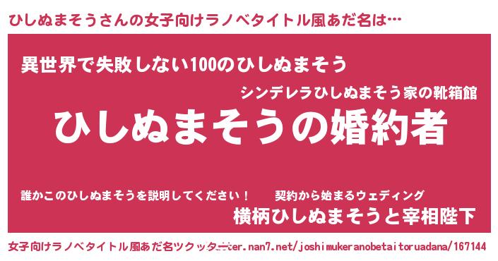 | 胡散臭い通販商品みたいなあだ名 | 『運命の人と巡り会える高級そうな壺…その名も「ひしぬまそう」』 |