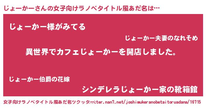 | 男性向けラノベタイトル風あだ名 | 『誰もが恐れるあのじょーかーが、ぼくの専属メイドになるようです。』 |