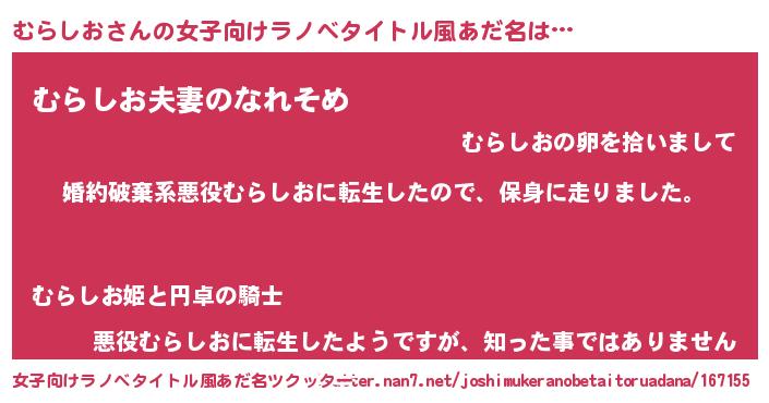 | 男性向けラノベタイトル風あだ名 | 『転生したらむらしおだった件』 |
