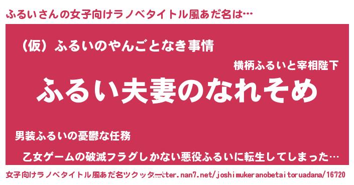 | 男性向けラノベタイトル風あだ名 | 『おまえをオタクにしてやるから、俺をふるいにしてくれ! 』 |