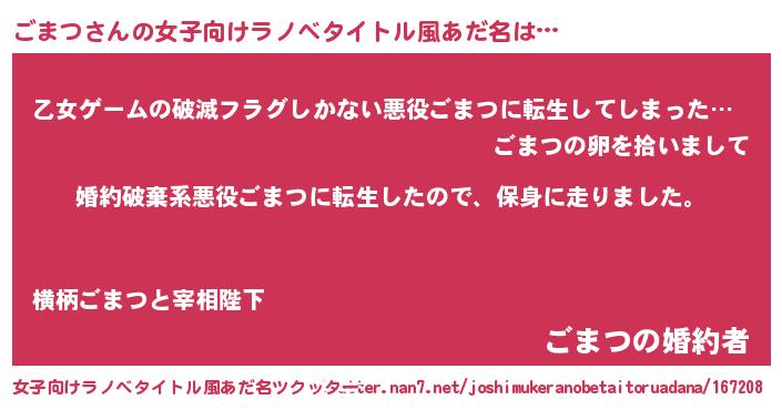 | 男性向けラノベタイトル風あだ名 | 『転生したらごまつだった件』 |