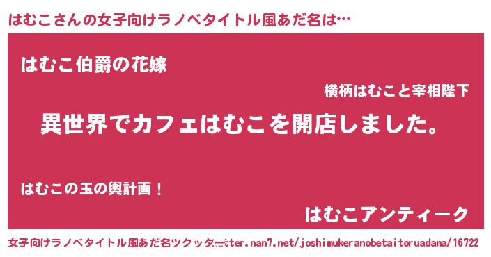 | 男性向けラノベタイトル風あだ名 | 『誰もが恐れるあのはむこが、ぼくの専属メイドになるようです。』 |