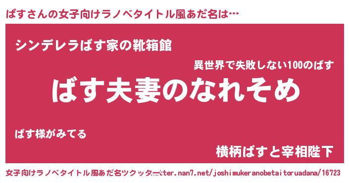 | 男性向けラノベタイトル風あだ名 | 『おまえをオタクにしてやるから、俺をばすにしてくれ! 』 |