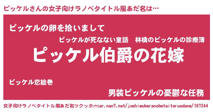 | 男性向けラノベタイトル風あだ名 | 『やはりピッケルの青春ラブコメはまちがっている 』 |