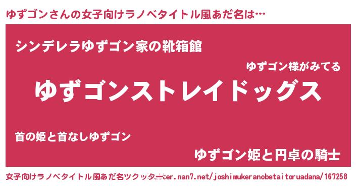| 男性向けラノベタイトル風あだ名 | 『Re:ゆずゴンから始める異世界生活』 |
