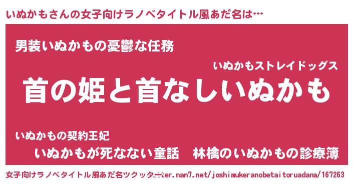 | 意味不明あだ名 | 『住所不定無職いぬかも(11歳)』 |