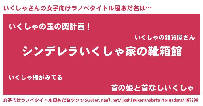 | 意味不明あだ名 | 『なめこ科いくしゃ属』『自称いくしゃ』 |