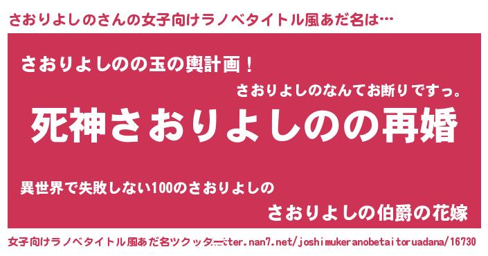 | 欧米人風あだ名 | 『ダニエルさおりよしの』 |