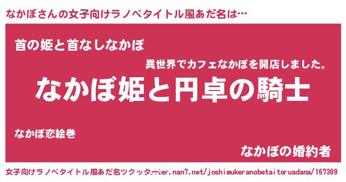 | 男性向けラノベタイトル風あだ名 | 『ナカボアートオンライン』 |