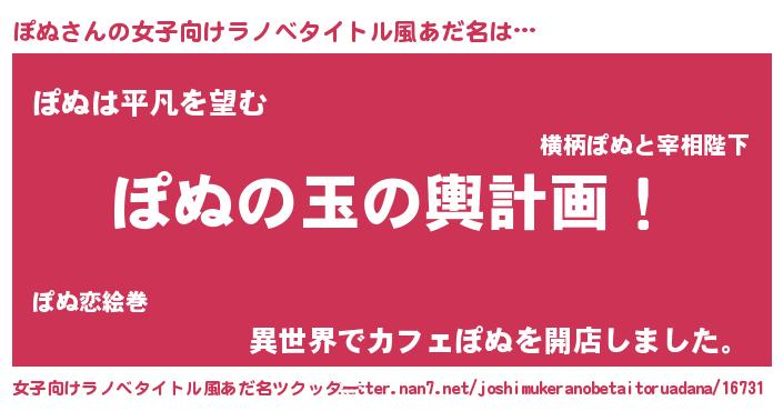 | 男性向けラノベタイトル風あだ名 | 『転生したらぽぬだった件』 |