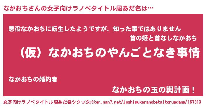 | 胡散臭い通販商品みたいなあだ名 | 『必ず成功する霊験あらたかなお札…その名も「なかおち」』 |