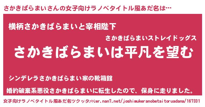 | ヘコむあだ名 | 『さかっちょ』『さかきばらまい(小並感)』 |
