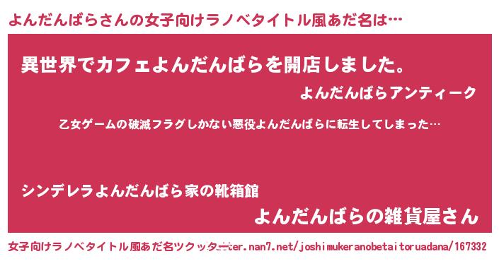 | 意味不明あだ名 | 『住所不定無職よんだんばら(79歳)』 |
