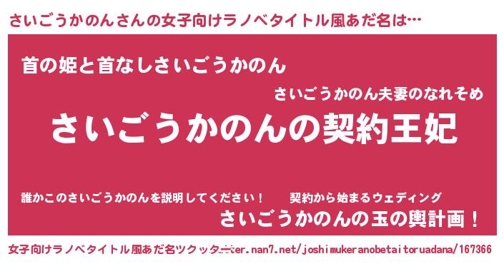 | 胡散臭い通販商品みたいなあだ名 | 『来世でも幸せになれる水素水…その名も「さいごうかのん」』 |