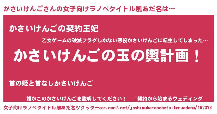 | ヘコむあだ名 | 『かさいけんご(笑)』『かさにー』 |