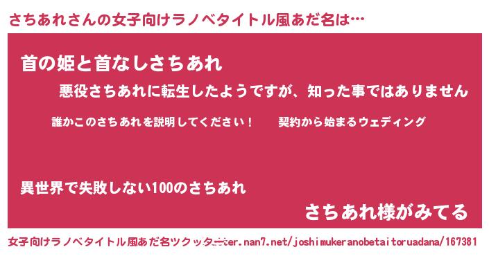 | 男性向けラノベタイトル風あだ名 | 『サチアレアートオンライン』 |
