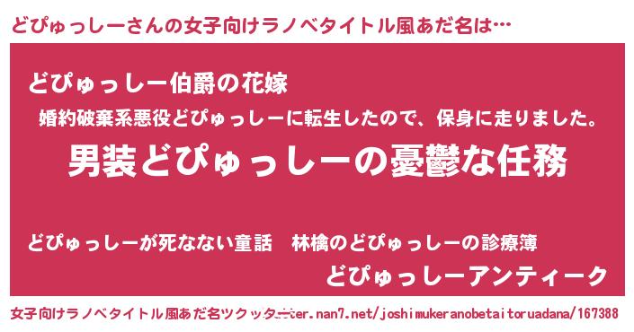 | 胡散臭い通販商品みたいなあだ名 | 『運命の人と巡り会える高級そうな壺…その名も「どぴゅっしー」』 |