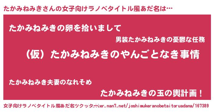 | 男性向けラノベタイトル風あだ名 | 『たかみねみきの憂鬱』 |