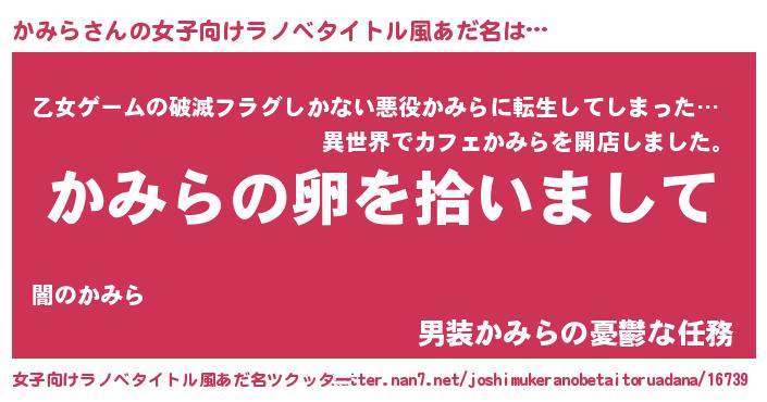 | 男性向けラノベタイトル風あだ名 | 『ダンジョンにかみらを求めるのは間違っているだろうか』 |