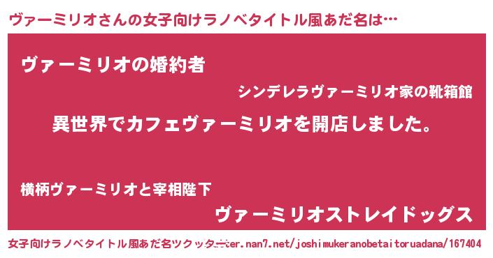 | 男性向けラノベタイトル風あだ名 | 『誰もが恐れるあのヴァーミリオが、ぼくの専属メイドになるようです。』 |