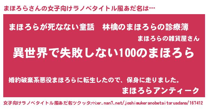 | 意味不明あだ名 | 『永久保存まほろら』『自称まほろら』 |