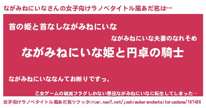 | 男性向けラノベタイトル風あだ名 | 『ナガミネニイナアートオンライン』 |