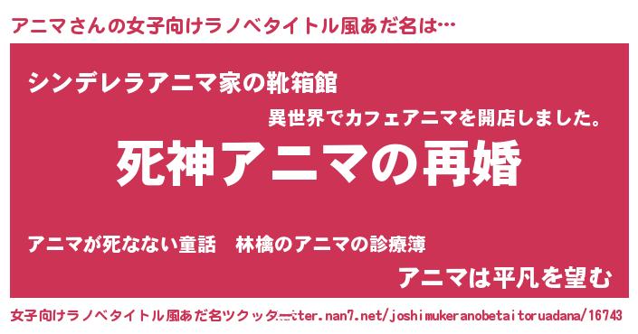 | 男性向けラノベタイトル風あだ名 | 『ノーゲーム・ノーアニマ』 |