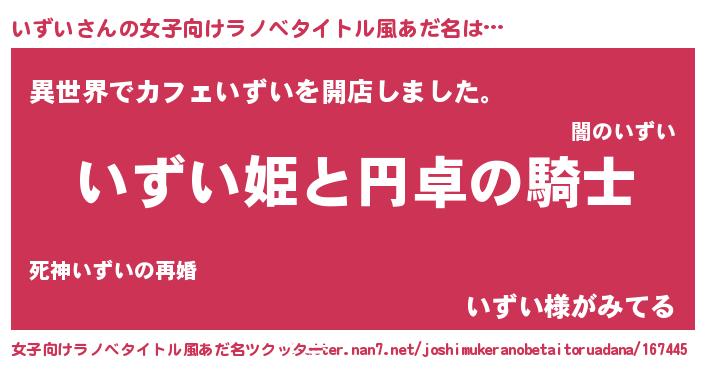 | 胡散臭い通販商品みたいなあだ名 | 『モテモテ間違いなし水晶球…その名も「いずい」』 |