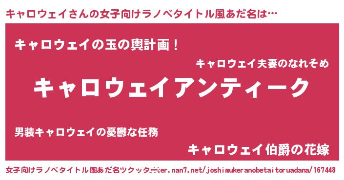 | 男性向けラノベタイトル風あだ名 | 『魔法科高校のキャロウェイ』 |