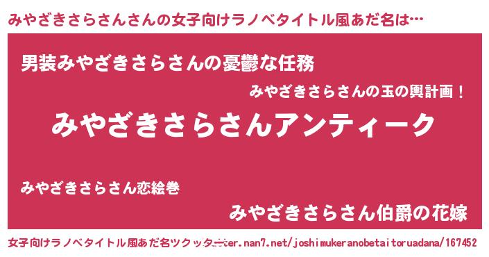 | 男性向けラノベタイトル風あだ名 | 『魔法科高校のみやざきさらさん』 |
