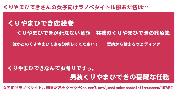 | 胡散臭い通販商品みたいなあだ名 | 『億万長者になれる水晶球…その名も「くりやまひでき」』 |