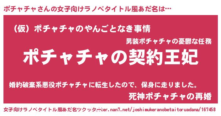 | ファンタジー風あだ名 | 『ポチディッシュ』『ポチフェル』 |