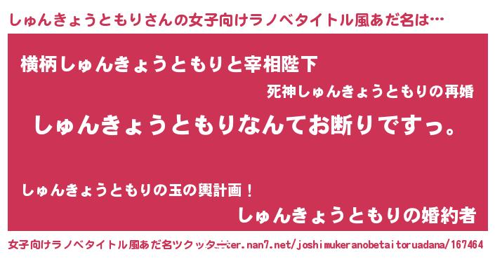 | 意味不明あだ名 | 『自称しゅんきょうともり』 |