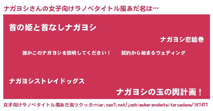 | 男性向けラノベタイトル風あだ名 | 『ナガヨシアートオンライン』 |