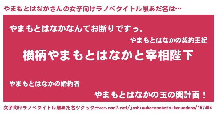 | 男性向けラノベタイトル風あだ名 | 『やまもとはなかに滅ぼされるだけの簡単なお仕事です』 |