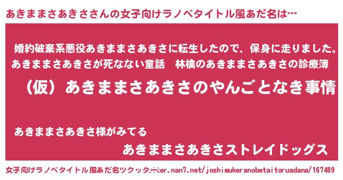 | 胡散臭い通販商品みたいなあだ名 | 『必ず成功する水晶球…その名も「あきままさあきさ」』 |