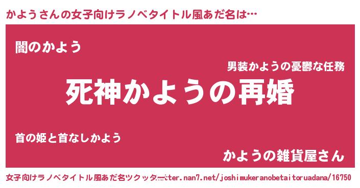 | 男性向けラノベタイトル風あだ名 | 『ノーゲーム・ノーカヨウ』 |
