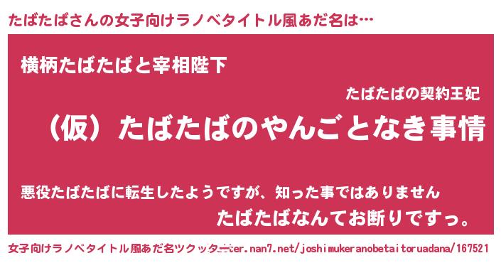 | ファンタジー風あだ名 | 『タバフェル』『ゼタバトゥ』 |