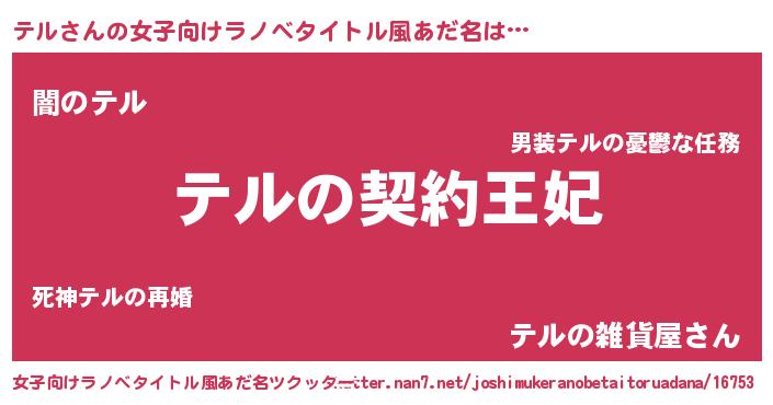 | 胡散臭い通販商品みたいなあだ名 | 『来世でも幸せになれる水素水…その名も「テル」』 |