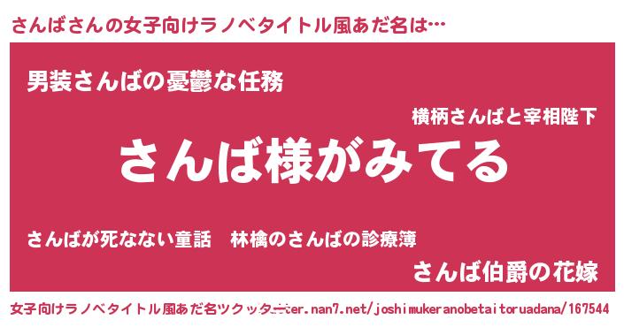 | ヒーロー風カッコイイあだ名 | 『天弓騎士サン』『ウルトラさんばマン』 |