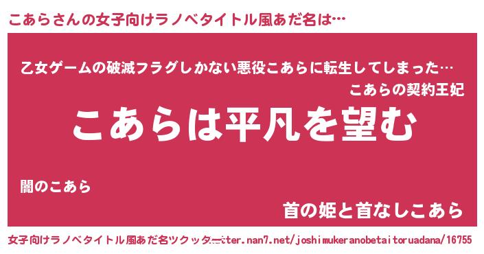 | 男性向けラノベタイトル風あだ名 | 『ダンジョンにこあらを求めるのは間違っているだろうか』 |